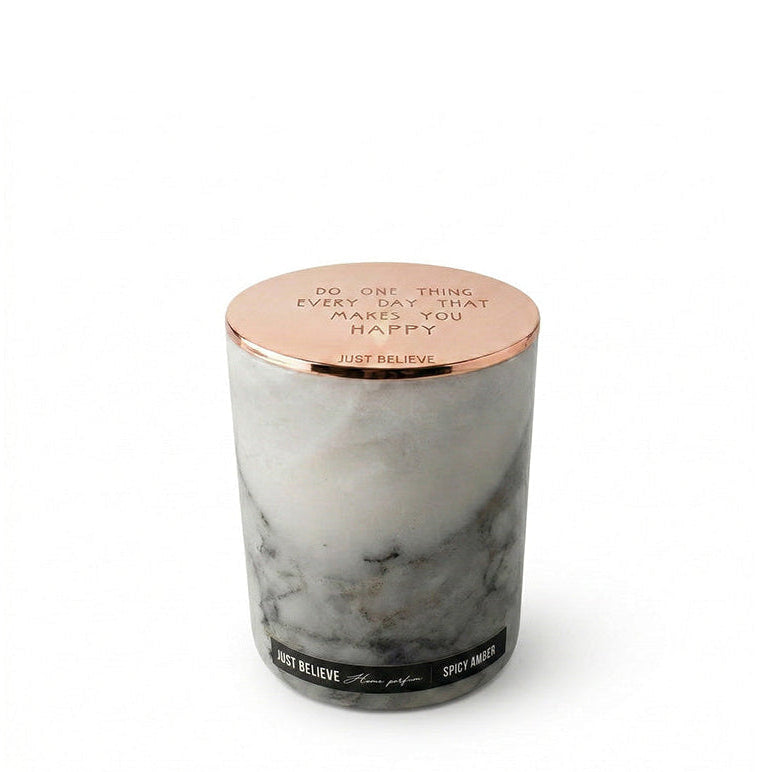 White Marble Candle - Spicy amber - rose gold cover